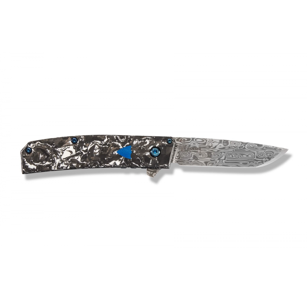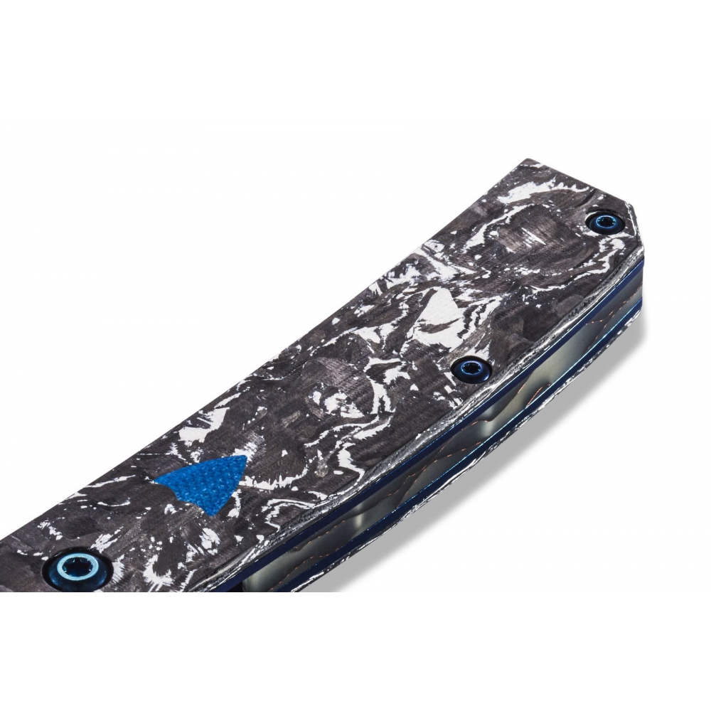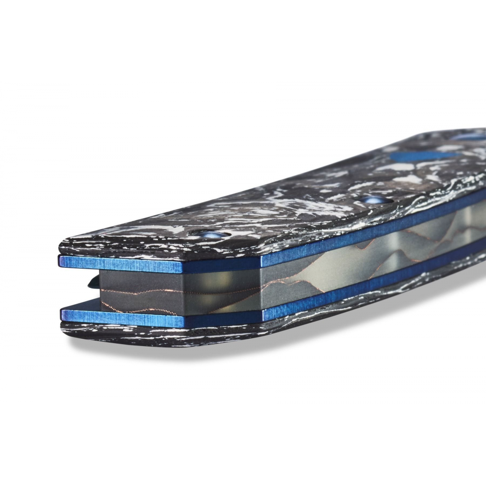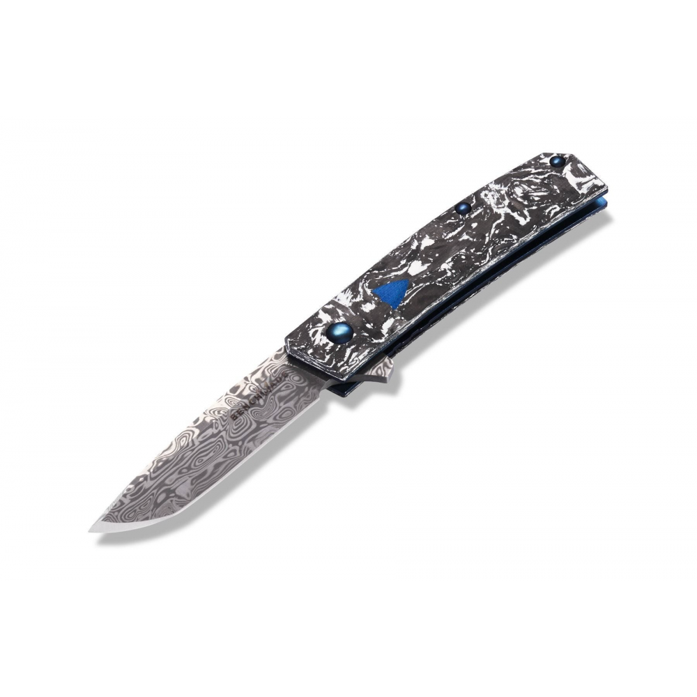 O Canivete Benchmade Oeser Tengu Flipper 601-211 Aço Damasco inclui bainha de couro.