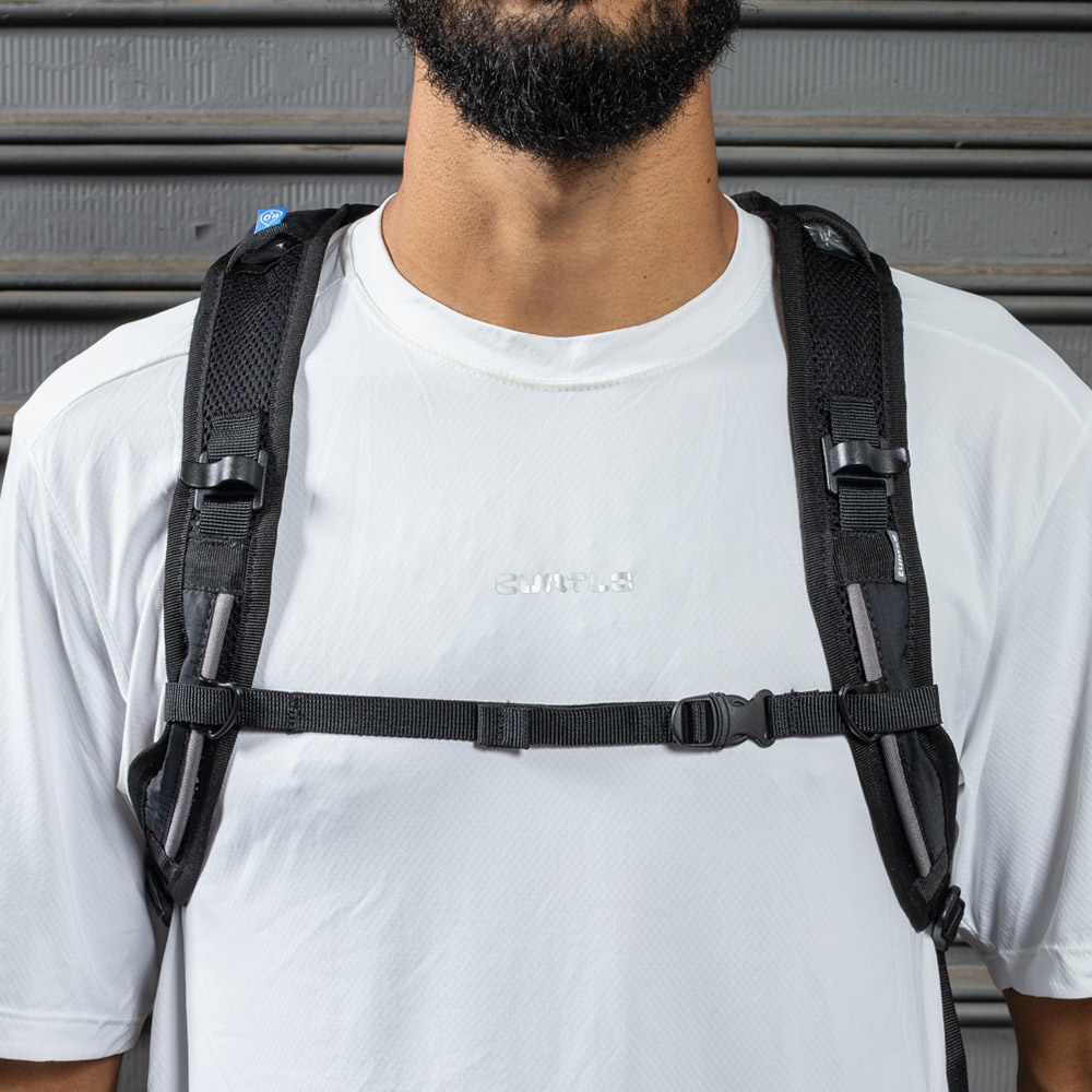 Mochila de hidratação de 2 litros, compacta e leve, com propriedade térmica que mantém a temperatura inicial do líquido por mais tempo. Possui dois bolsos frontais para pequenos objetos e compartimento traseiro que acomoda o reservatório de água. Os refletivos e a fita frontal para luz sinalizadora auxiliam na visualização em atividades noturnas. O produto oferece duas opções de saída do tubo do hidratador, com clip para fixação da mangueira na parte superior das duas alças: esquerda e direita. Ideal para a prática de esportes que exigem desempenho. Acompanha reservatório atóxico Acqua Flex de 2 litros.