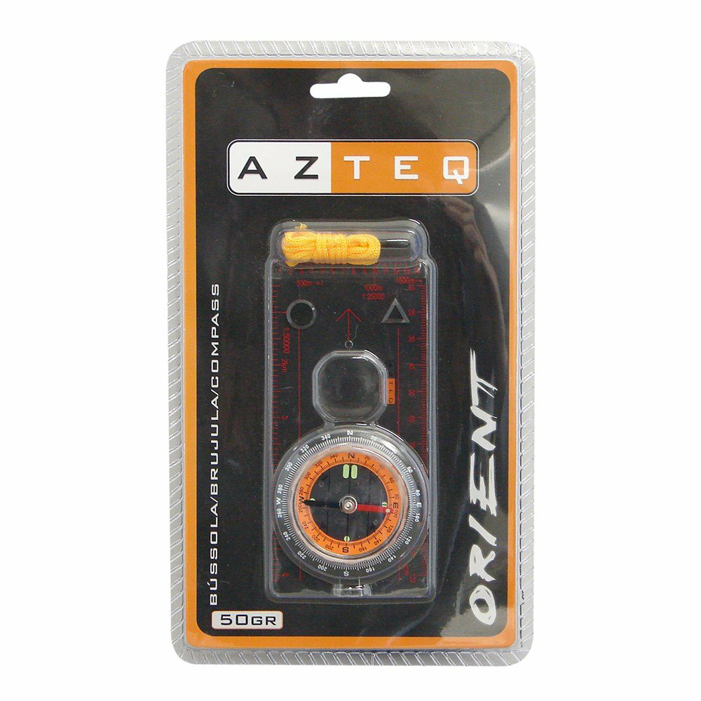 A bússola Oriente da Azteq é compacta e leve, sendo ideal para orientação em geral, competições, trekking, caminhadas e corridas de aventura. Possui régua, marcação de escalas 1:25000 e 1:50000, lupa e indicadores dos pontos cardeais e do norte da agulha pintados com tinta fluorescente para permitir a leitura básica em condições de pouca luz. Acompanha cordão para pendurar no pescoço. Informações gerais