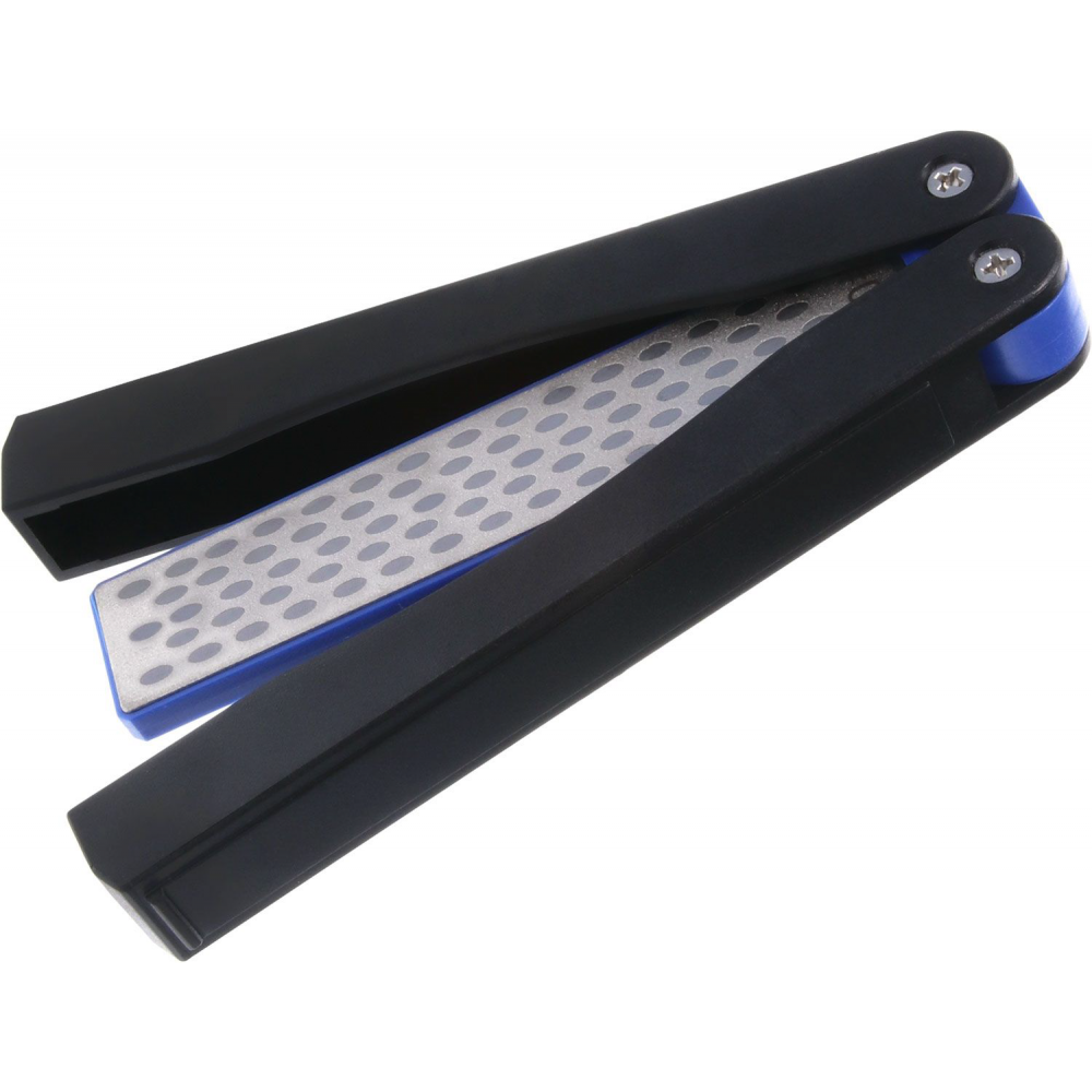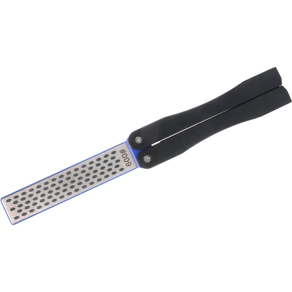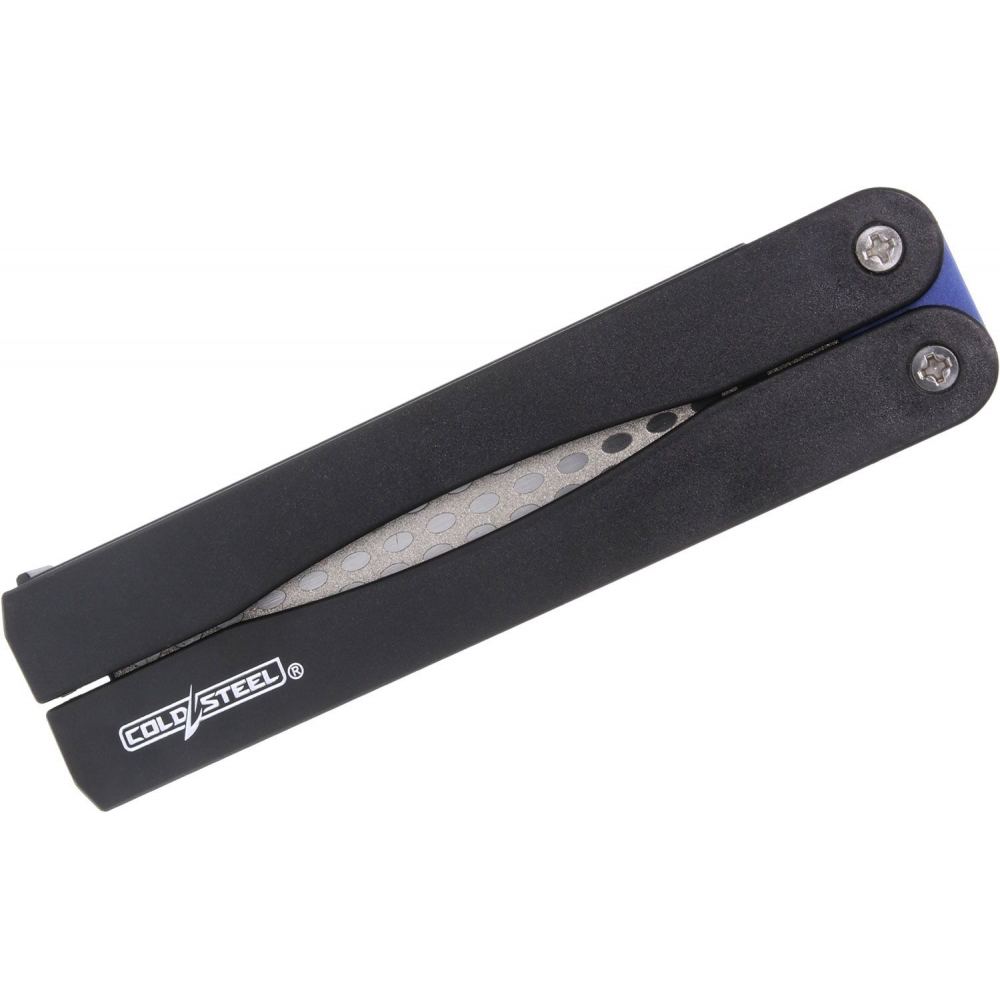 O Afiador Cold Steel 360/600 é um afiador dobrável com duas superfícies diamantadas. De um lado há uma superfície de grão 360 para correção do gume e do outro uma superfície de grão 600 para afiação fina. A superfície alveolar permite afiar lâminas rapidamente uma vez que as limalhas são acumuladas longe da área abrasiva.