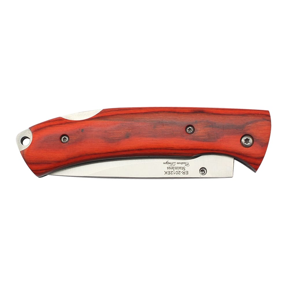 Canivete Elk Ridge ER-2012EK, robusto e elegante, com lâmina em aço inoxidável e cabo em acrílico com detalhe em madeira.