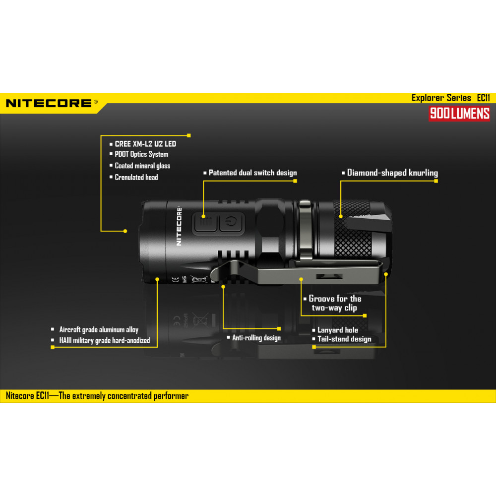 *Para atingir os 900 lúmens, utilize uma bateria IMR 18350.