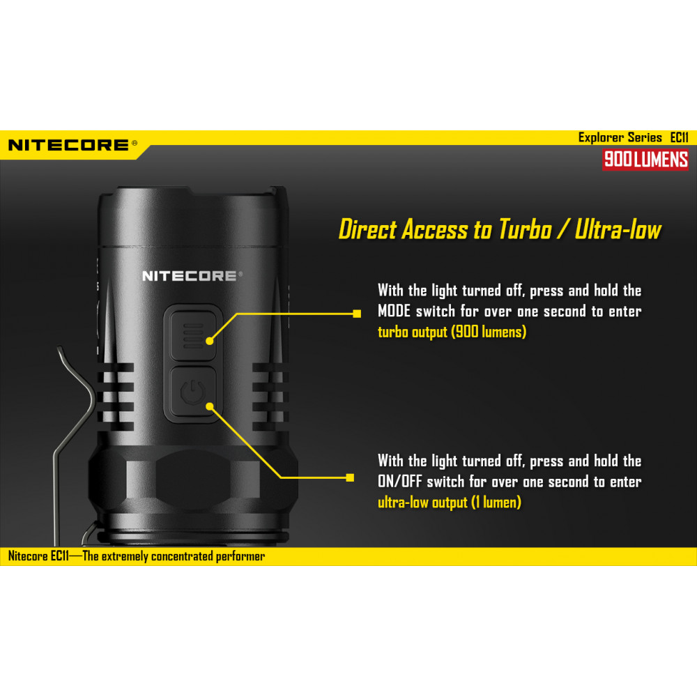 Para acessar o modo Ultra Low, com a lanterna desligada, pressione o botão Liga/Desliga por um segundo.